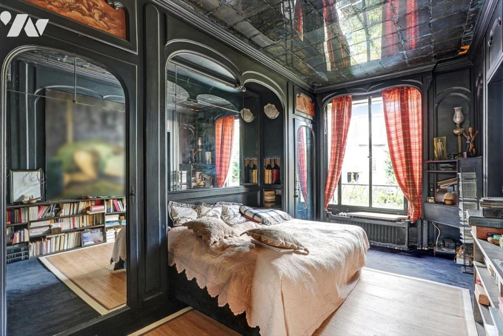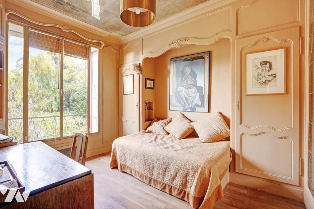 11 pièces, très lumineux, 2 entrées possibles, éléments de décoration remarquables (ferronneries, boiseries, fresques murales, marbre), pas de vis-à-vis, très calme.
